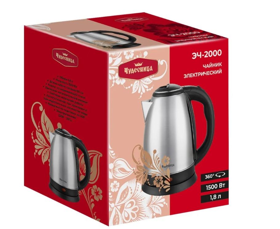 Электрочайник Чудесница ЭЧ-2000 нерж.сталь, 1,8 л, 1500Вт
