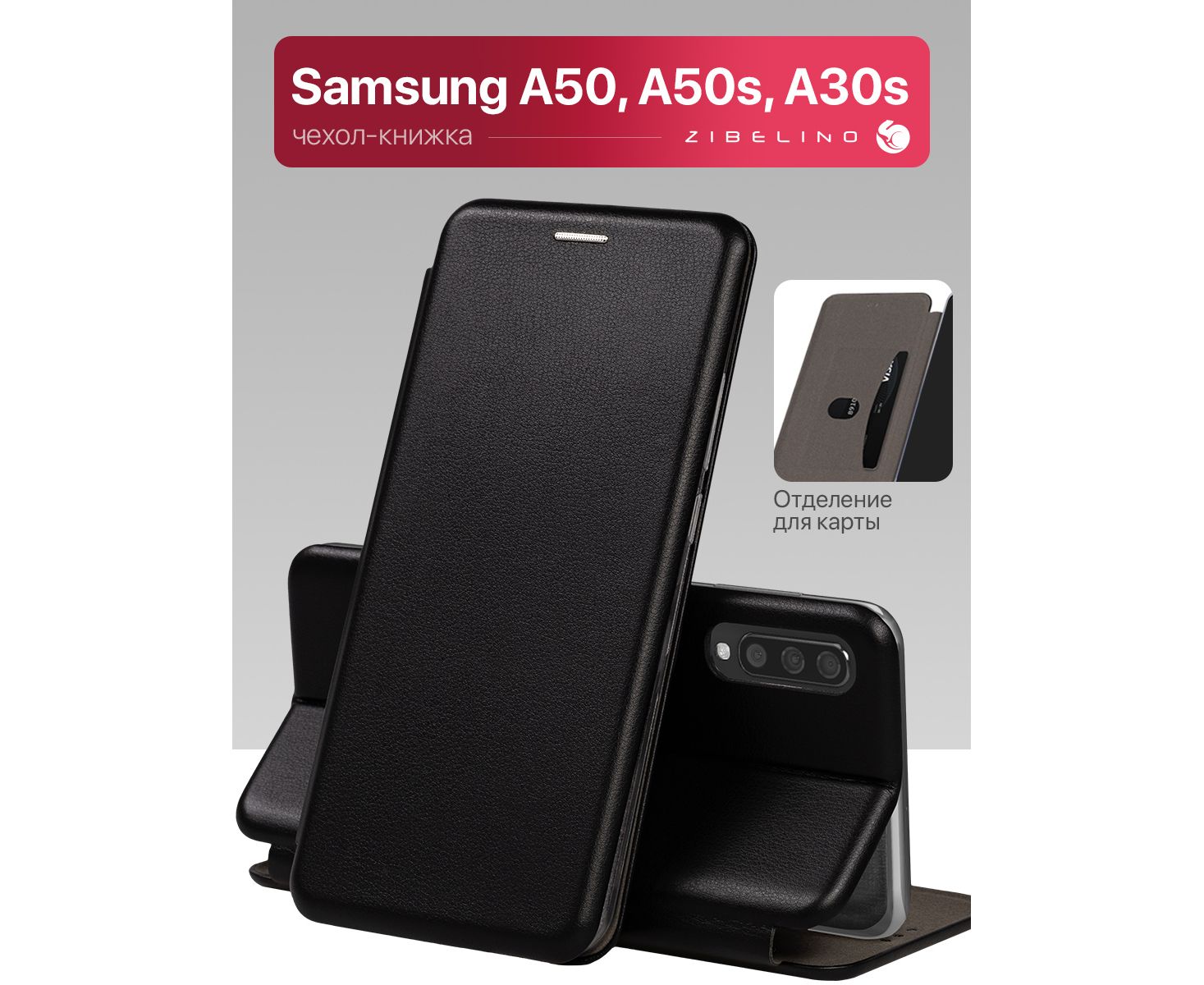 Чехол книжка Book для Samsung A50, A50S, A30S (A505/A507/A307) противоударный, с магнитом, черный (Самсунг А50)