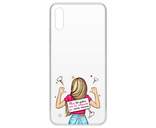 Чехол-накладка Clear Case Мне все равно для Xiaomi Redmi 9A надежно защитит Ваш смартфон от повреждений, загрязнений, пыли и царапин. В руке не скользит, впритык садится на корпус, не изменяя габариты смартфона, точное соответствие всем разъемам и кнопкам, портам и камерам. Чехол-накладку Clear Case можно использовать с беспроводной зарядкой. Чехол выполнен из качественного, мягкого на ощупь силикона, одновременно легкий и прочный, гибкий и эластичный.