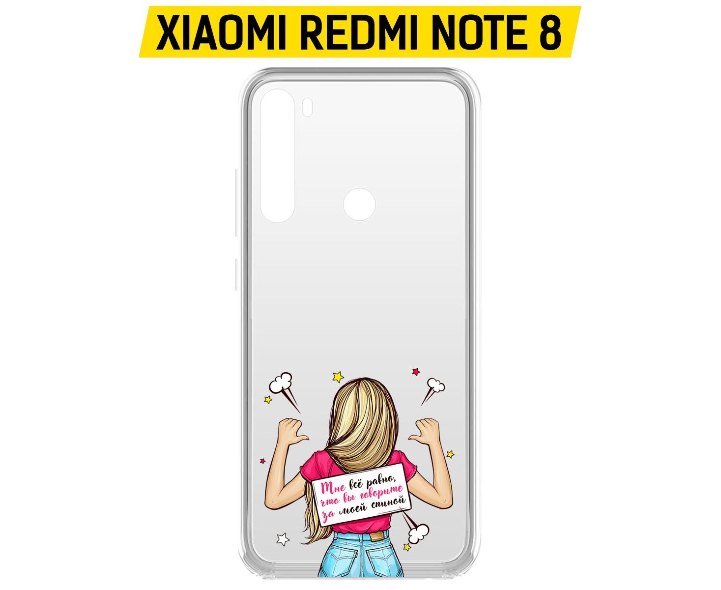 Чехол-накладка Clear Case Мне все равно для Xiaomi Redmi Note 8/Note 8 (2021) надежно защитит Ваш смартфон от повреждений, загрязнений, пыли и царапин. В руке не скользит, впритык садится на корпус, не изменяя габариты смартфона, точное соответствие всем разъемам и кнопкам, портам и камерам. Чехол-накладку Clear Case можно использовать с беспроводной зарядкой. Чехол выполнен из качественного, мягкого на ощупь силикона, одновременно легкий и прочный, гибкий и эластичный.