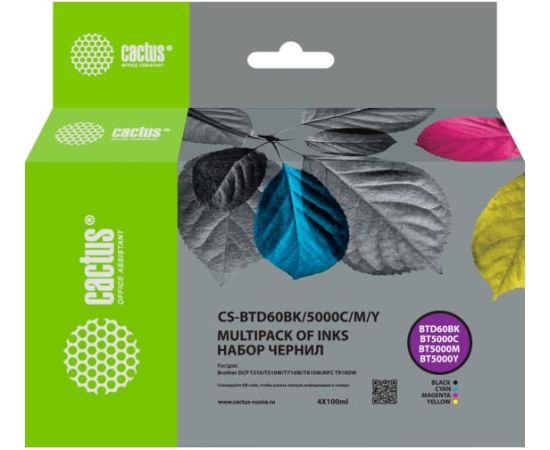 Чернила Cactus CS-BTD60BK/5000M/C/Y голубой/пурпурный/желтый/черный набор 4x100мл для Brother DCP-T300/T500W/T700W/MFC-T800W