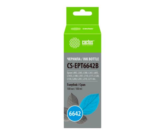 Чернила Cactus CS-EPT6642B T6642 голубой 100мл для Epson L100/L110/L120/L132/L200/L210/L222/L300/L312/L350/L355/L362/L366/L456/L550/L555/L566/L1300