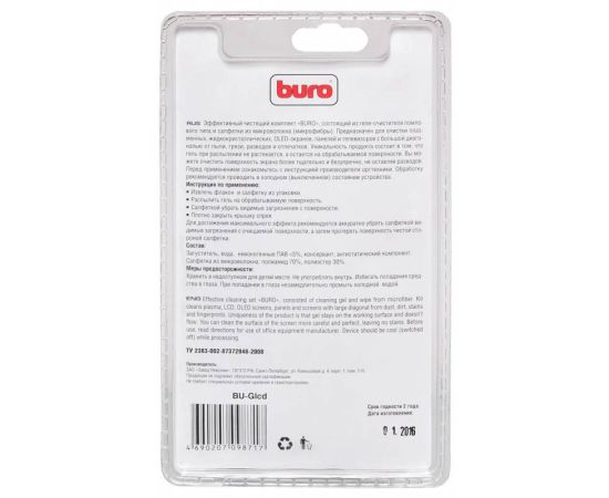 Чистящий набор (салфетки + гель) Buro BU-Glcd для экранов ЖК мониторов блистер 200мл
