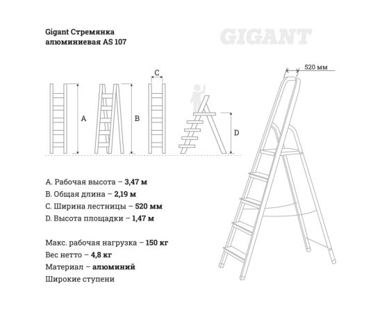 Cтремянка Gigant AS.107 алюминиевая