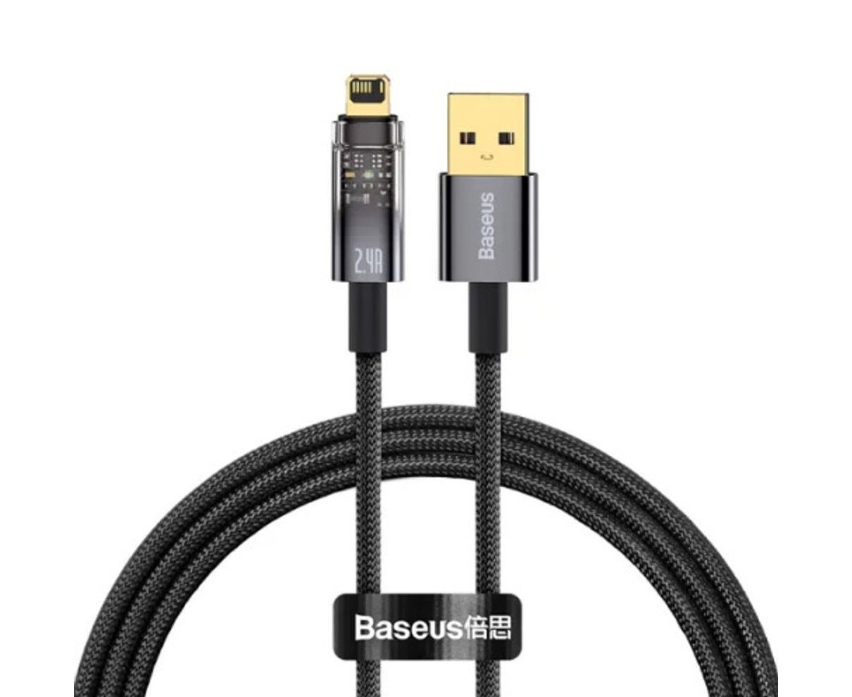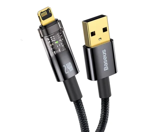 Дата-кабель Baseus Explorer (CATS000401) Auto Power-Off Fast Charging USB to IP 2.4A 1m Black