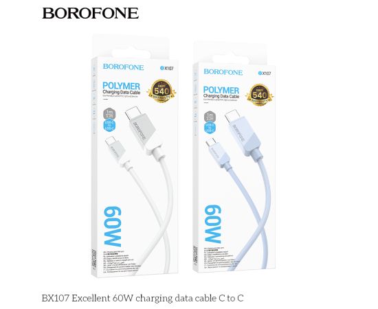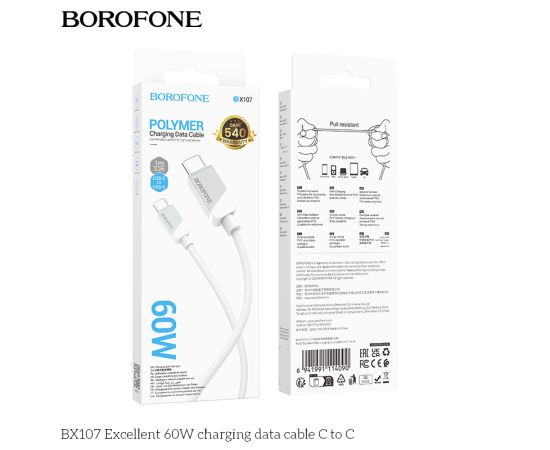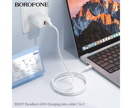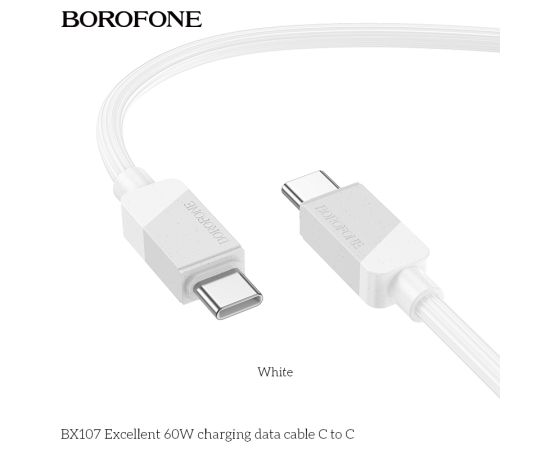 Дата-кабель BOROFONE BX107 Excellent 60W charging Type-C to Type-C (белый)