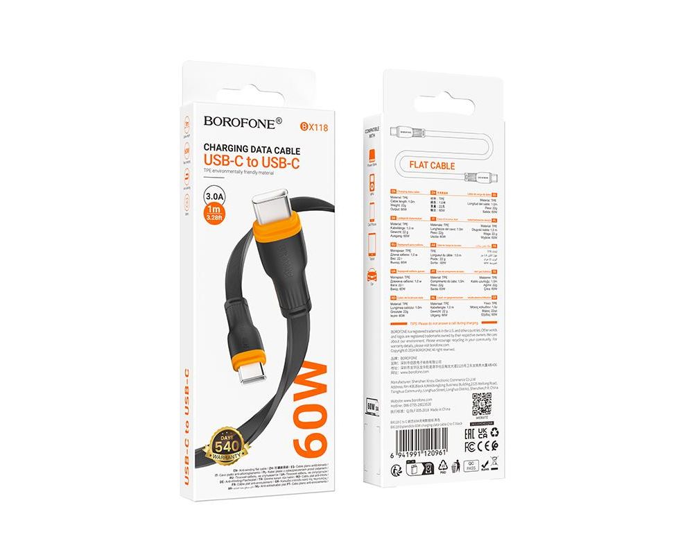 Дата-кабель BOROFONE BX118 Esplendido 60W C to C (черный)