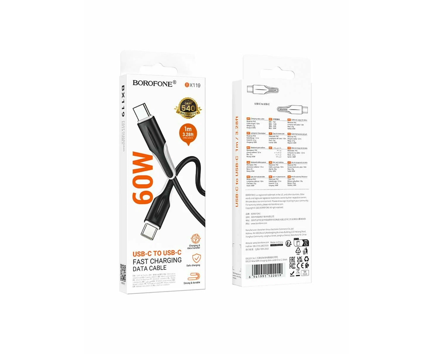 Дата-кабель BOROFONE BX119 New 60W C to C (черный)