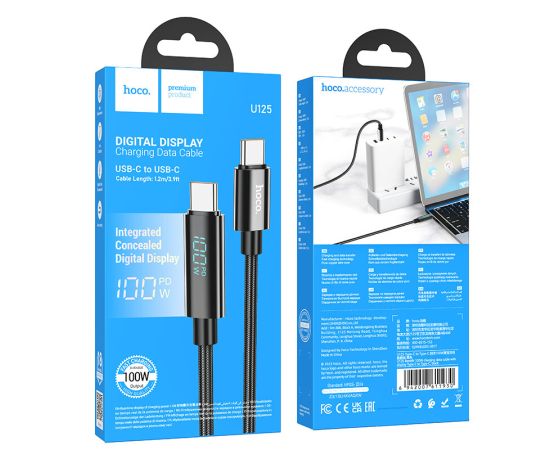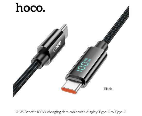 Дата-кабель HOCO U125 Benefit 100W charging data cable with display Type-C + Type-C (черный)