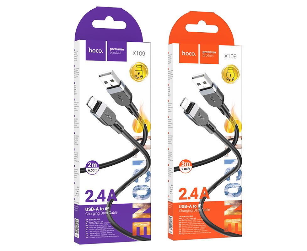 Дата-кабель HOCO X109 Energy silicone charging data cable IP (L-2M) Black