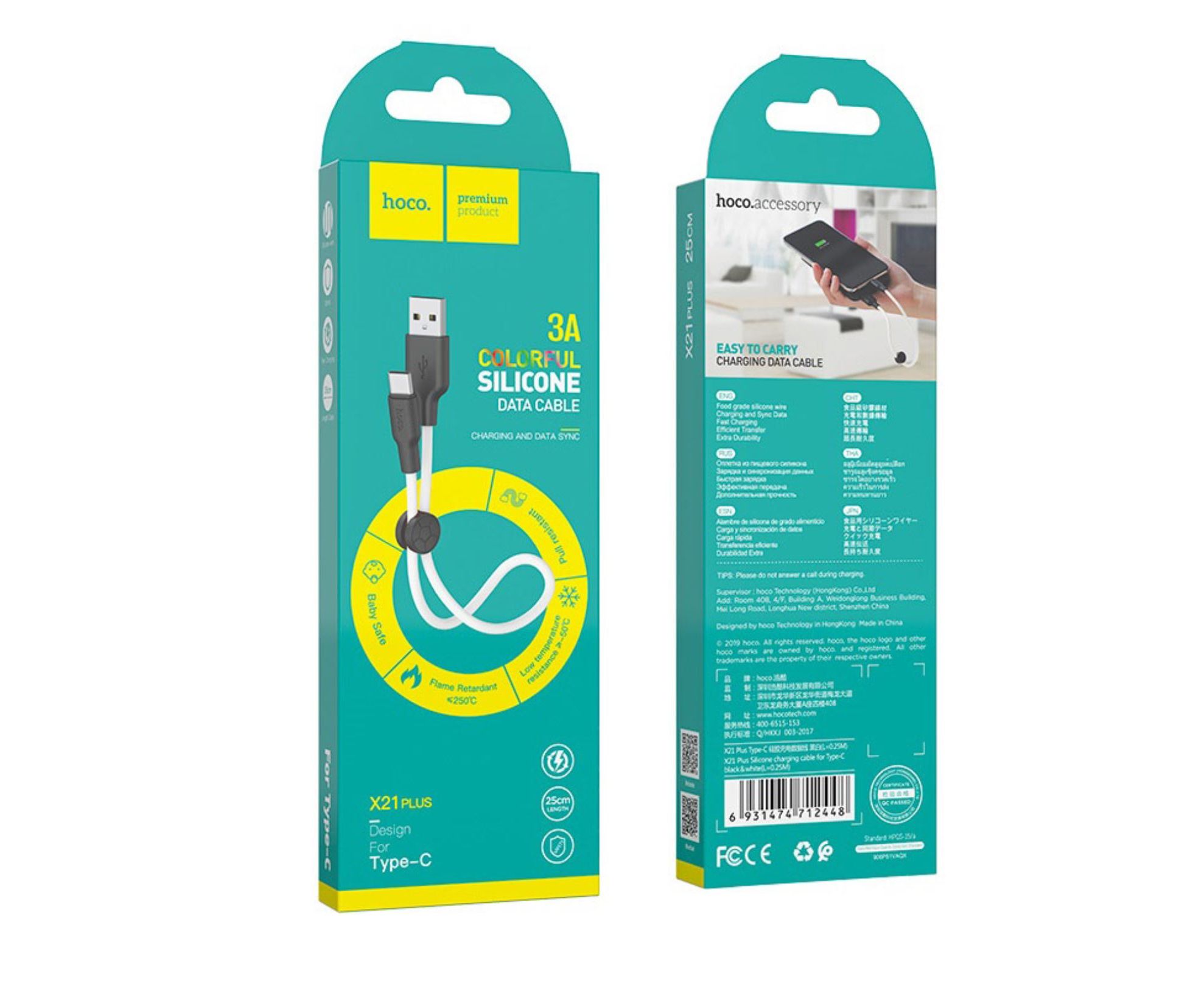 Дата-кабель HOCO X21 Plus Silicone charging Type-C 0,25 м (чёрно-белый)