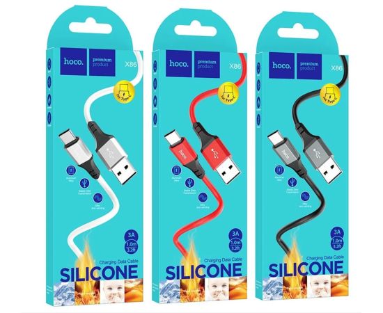 Дата-кабель HOCO X86 Spear silicone charging data cable Type-C 1м (черный)