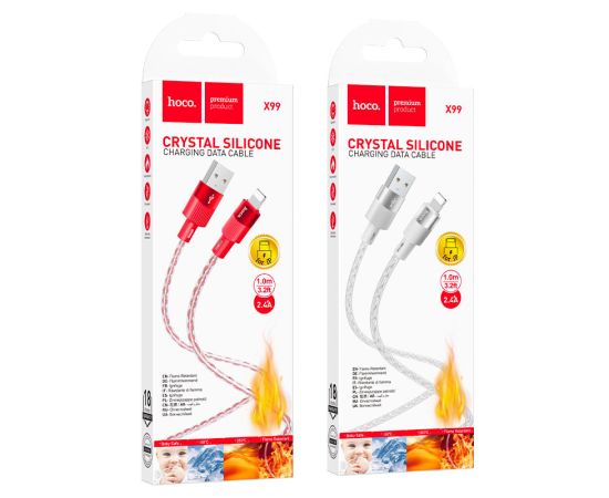 X99 Crystal junction, USB на iP зарядный дата кабель, ток доo 2.4A, силиконовая оплётка, длина – 1м