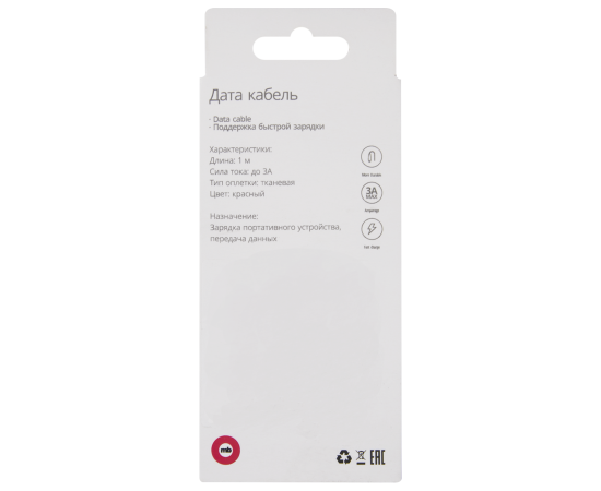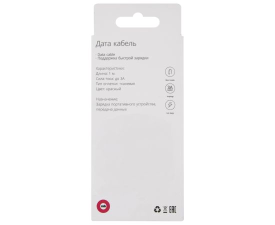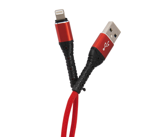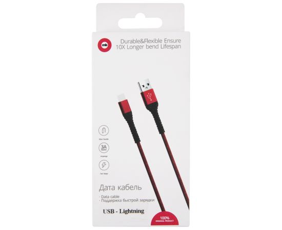 Дата-кабель mObility USB – Lightning, 3А, тканевая оплетка, красный
