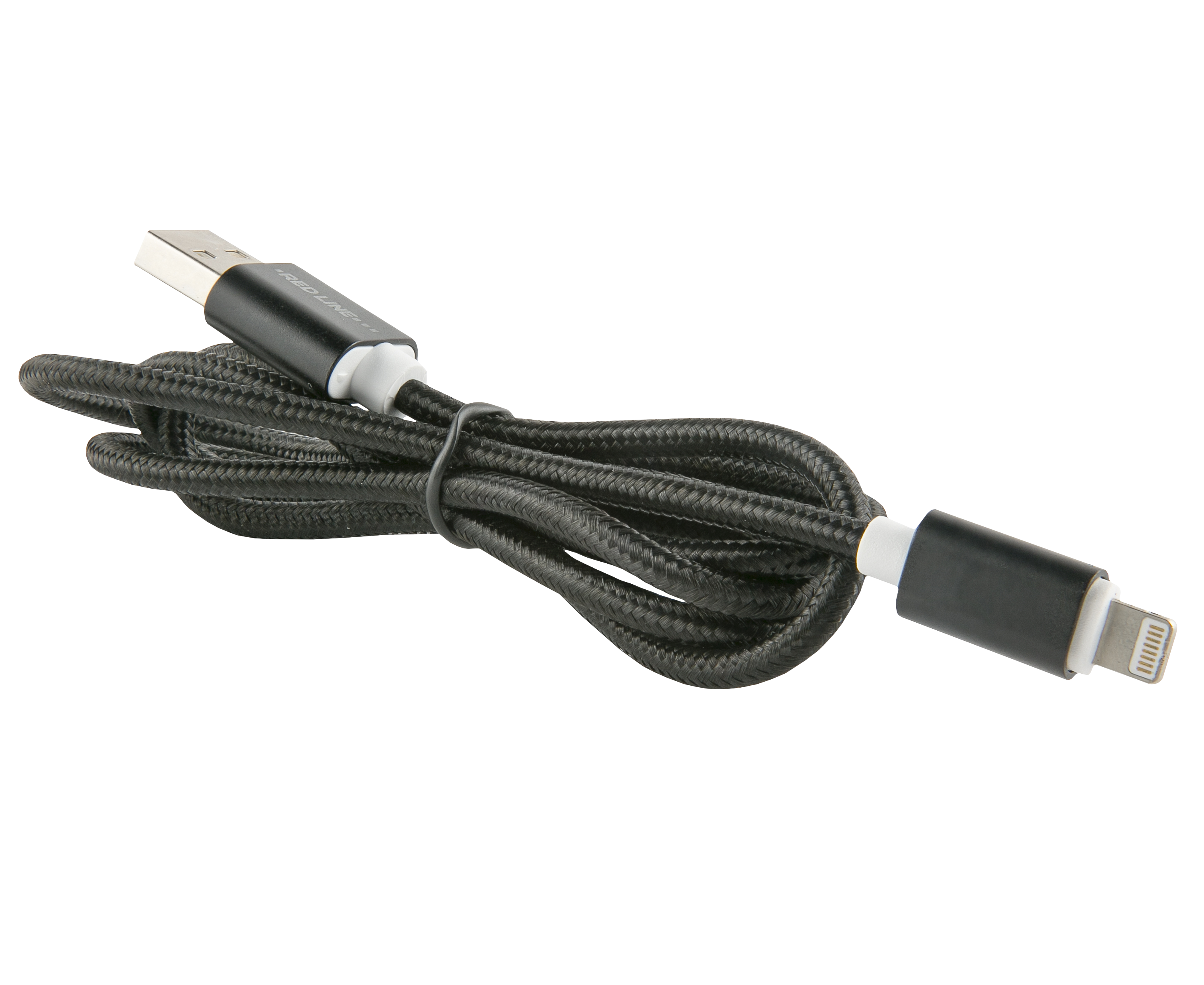 Дата-кабель Red Line USB – 8 – pin для Apple нейлоновая оплетка, черный