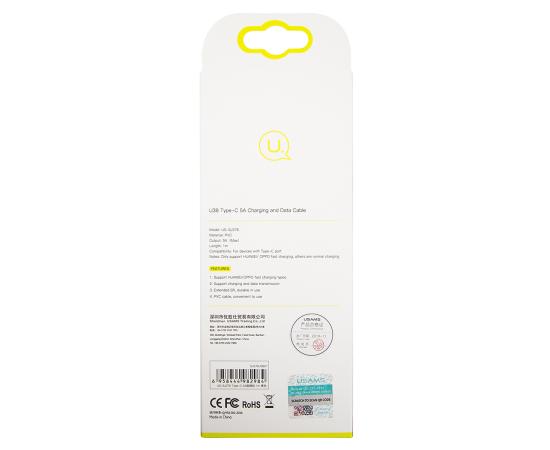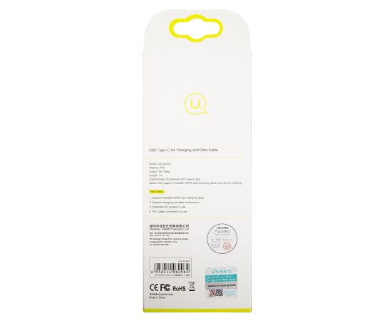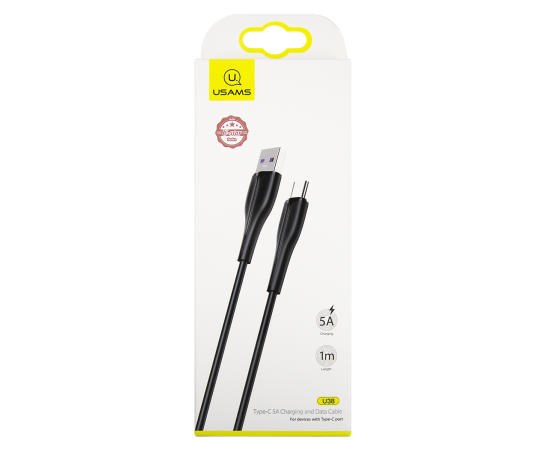 Дата-Кабель USAMS-U38 USB - Type-C, 5A, черный (SJ376USB01)