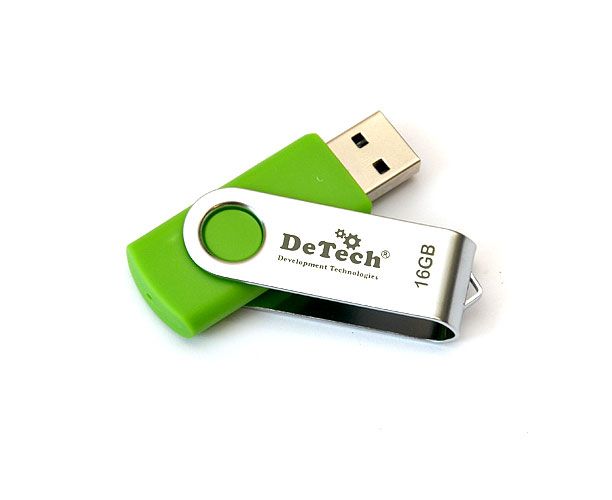 Корпус DeTech изготовлен из прочного пластика. Благодаря богатой цветовой гамме каждая модель приобретает индивидуальный характер. Дополнительным преимуществом является поворотная металлическая скоба, которая также защищает устройство памяти USB и придает ему неповторимый вид. Поворотная система замыкания USB и отсутствие колпачка удовлетворит потребности даже самых рассеянных пользователей.