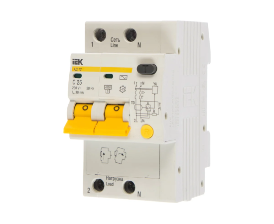 Дифавтомат IEK АД12М (MAD12-2-025-C-030) 25A тип C 4.5kA 30мА A 2П 230В 3мод белый (упак.:1шт)