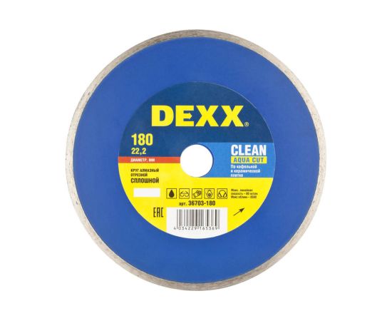 Диск алмазный DEXX 36703-180 Clean Aqua Cut 180мм отрезной сплошной по керамограниту, мрамору, плитке