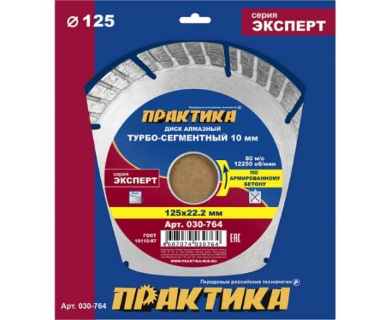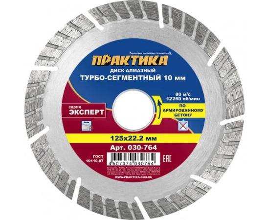 Диск алмазный турбосегментный Практика Эксперт-бетон 125 х 22 мм (030-764) сегмент 10мм/1 шт/коробка