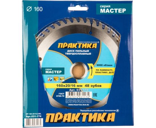 Диск пильный твёрдосплавный по ламинату Практика 160 х 20/16 мм (031-174) 48 зубов