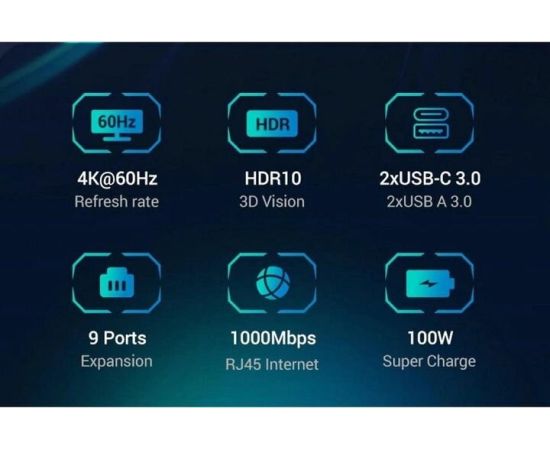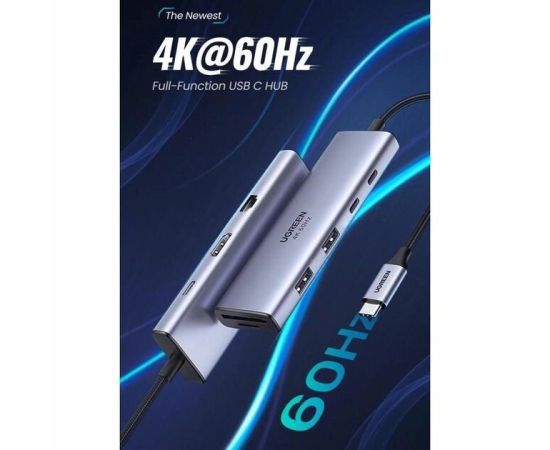 Док-станция Ugreen CM498 (15375) USB-C to 2*USB3.0+2*USB-C+HDMI+RJ45+SD&TF +PD port Docking Station space gray