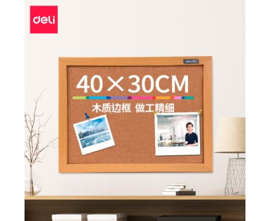 Доска пробковая Deli 8761 пробка желтый 30x40см деревянная рама