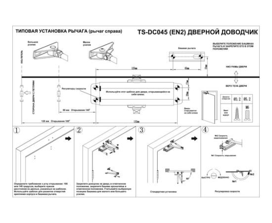 Доводчик двери Tantos TS-DC045 (00-00034165) 2 класс белый
