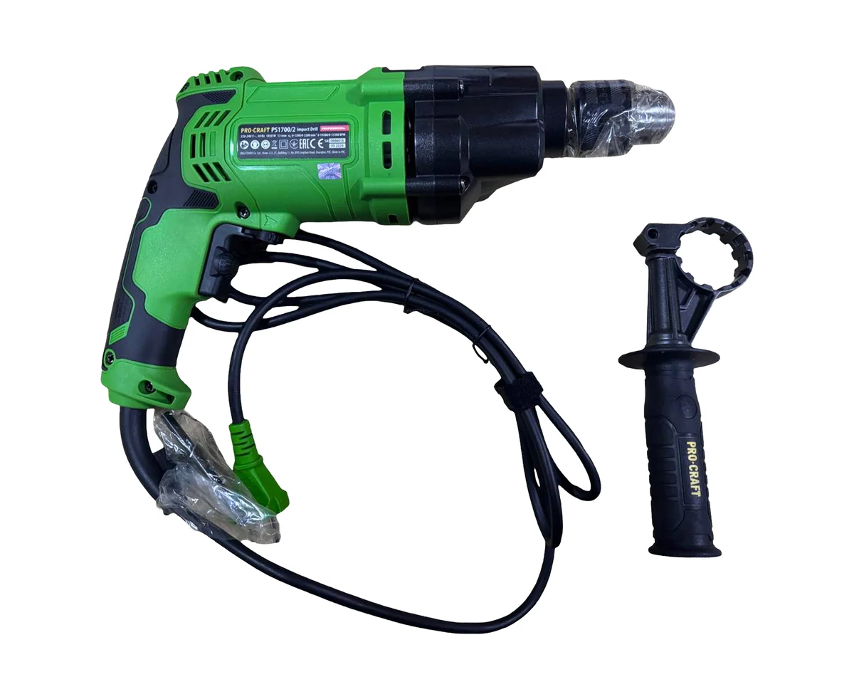 Дрель PROCRAFT PS1700/2 ударная 1050 Вт, 0-1200/0-3200 об/мин, 0-17600/0-48000 уд/мин