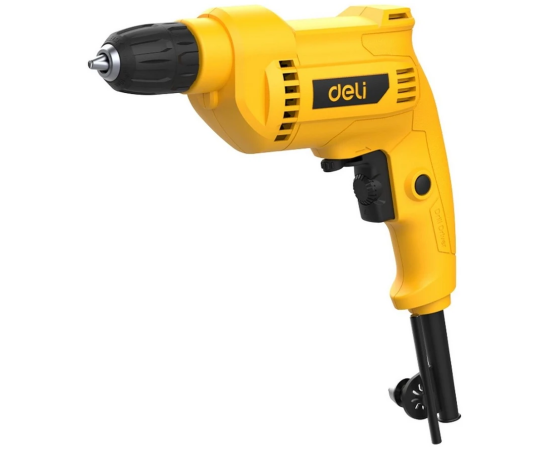 Deli DL-DZ10-E2 — мощная и удобная сетевая дрель для любых задач!Двигатель 500 Вт и скорость до 3300 об/мин позволяют легко сверлить дерево, металл и пластик, а продуманная конструкция делает работу комфортной даже при интенсивном использовании.