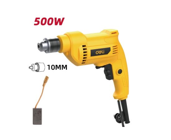 Дрель сетевая Deli DL-DZ10-E3 500Вт, 0-3300об/мин, ключевой патрон 10мм, картон