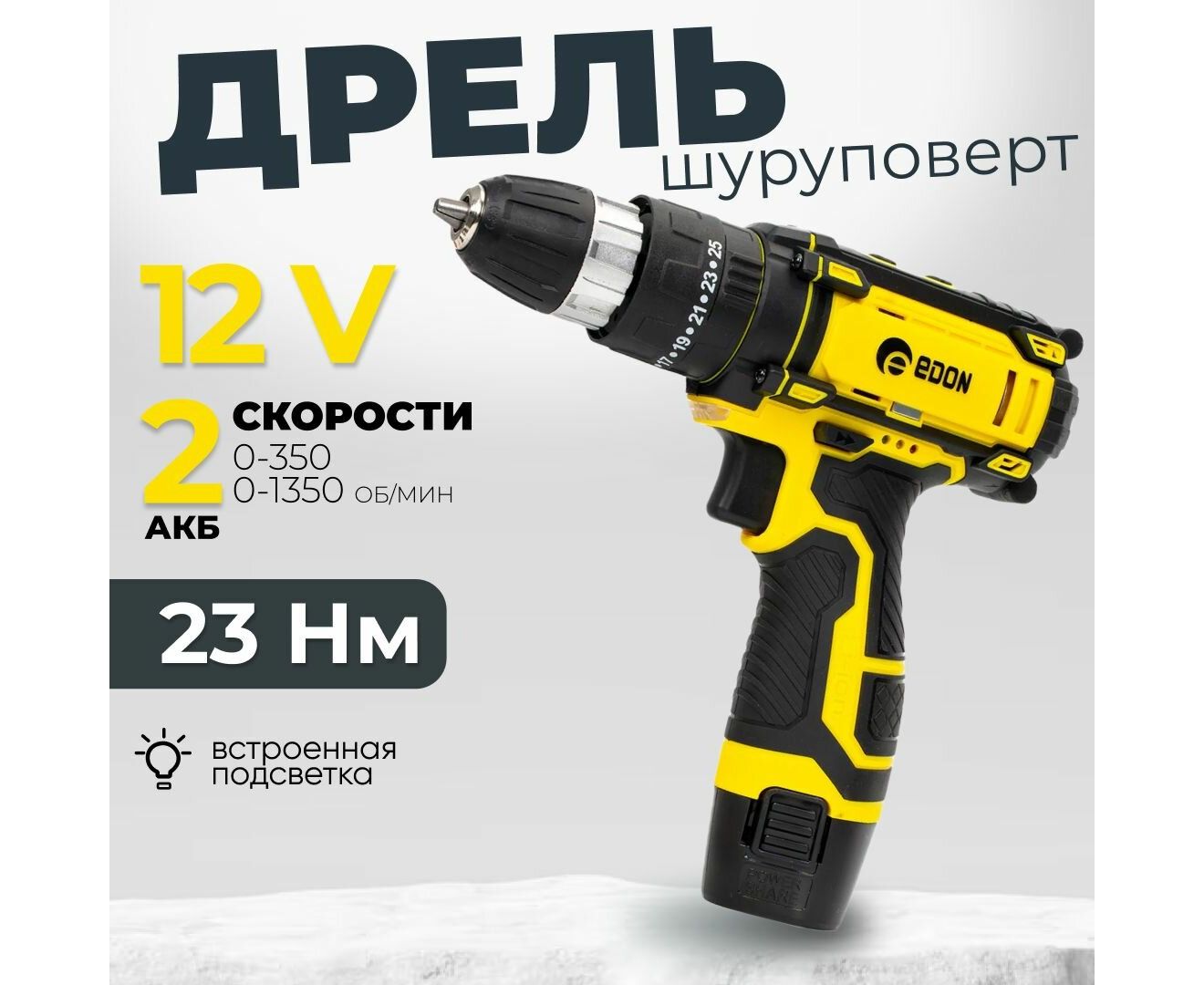 Дрель-шуруповерт EDON AD-12M желтый/черный 27683