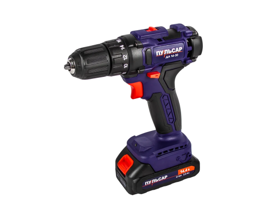 Дрель-шуруповерт Пульсар ДА 14-30 (916-950) безударная 14,4В, 30Hm, Li-on, 2,0Ahx2 , кейс