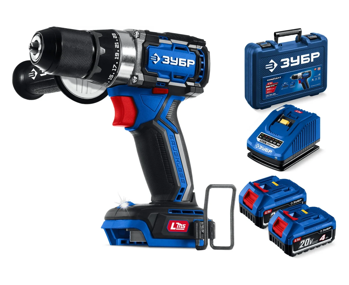 ЗУБР Профессионал 20 В, 70 Н·м, 2 АКБ LMS (4 А·ч), бесщеточная дрель-шуруповерт, кейс DB-70-42 - ЗУБР Профессионал 20 В, 70 Н·м, 2 АКБ LMS (2 А·ч), бесщеточная дрель-шуруповерт, кейс DB-70-22 - высокотехнологичная модель в новой линейке аккумуляторного инструмента ЗУБР серии LMS.