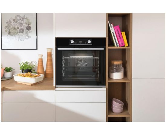 Независимая духовка Gorenje BOSX6737E09BG — встраиваемая модель черного цвета с внутренним объемом 77 л. Это настоящий кулинарный центр, благодаря обширным функциям которого сотворить самые изысканные блюда будет легко и просто. Уникальная сводчатая конструкция потолка камеры HomeMade гарантирует эффект приготовления в печи на дровах. Он достигается благодаря свободному циркулированию воздуха внутри.