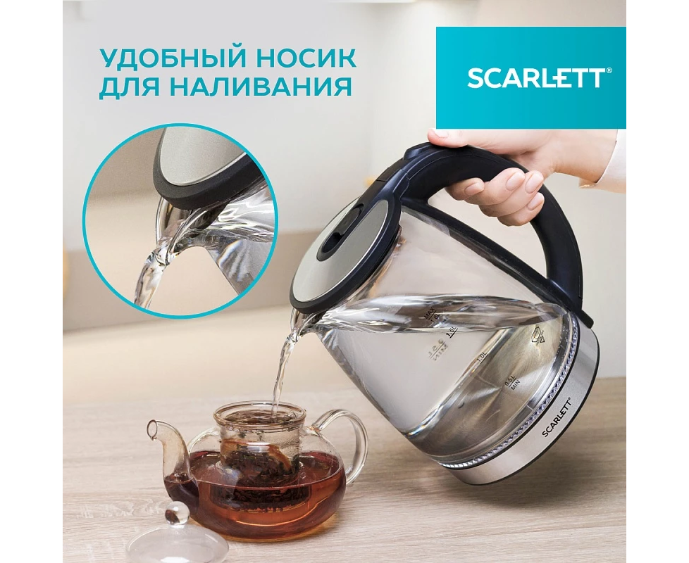 Электрочайник Scarlett SC-EK27G103 сталь и черный