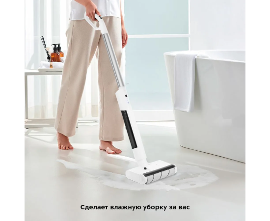 Для зарядки и самоочистки прибор устанавливается на базу. Электрошвабра работает от аккумулятора до 60 минут. Когда швабра подключена к сети, индикаторы показывают уровень зарядки прибора. Нажатие на кнопку самоочистки запускает эту функцию.