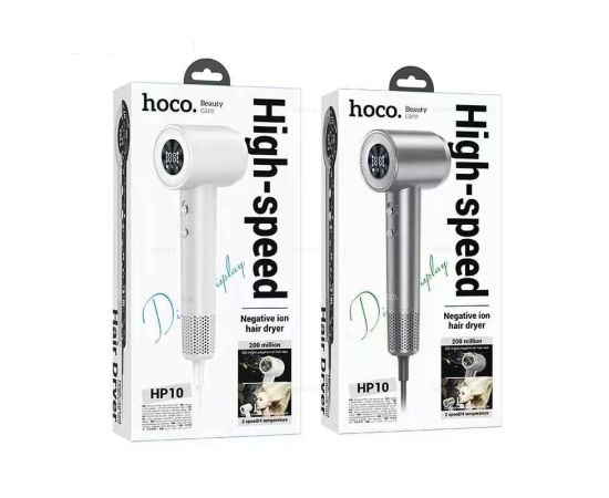 Фен HOCO HP10 (белый) EU, высокоскоростной, с дисплеем, 1600W, ионизация, 2 скорости, 4 режима температуры
