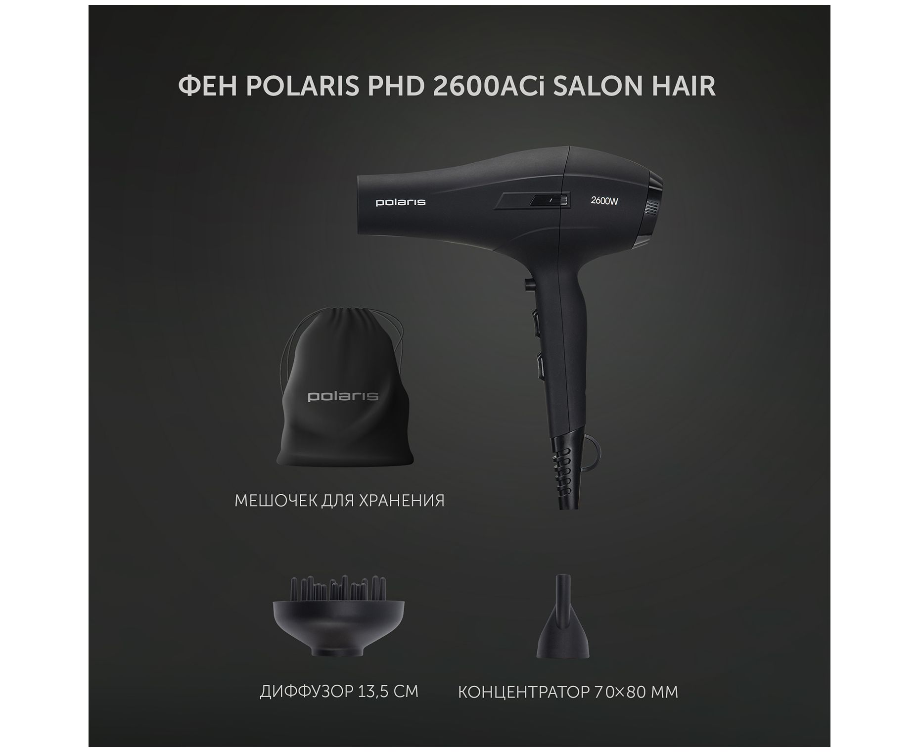 Фен POLARIS PHD 2600ACi Salon Hair черный