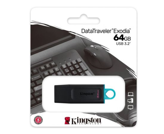 Флэш накопитель USB 64 Гб Kingston DataTravele Exodia 3.1 (black/light blue) (205112)
