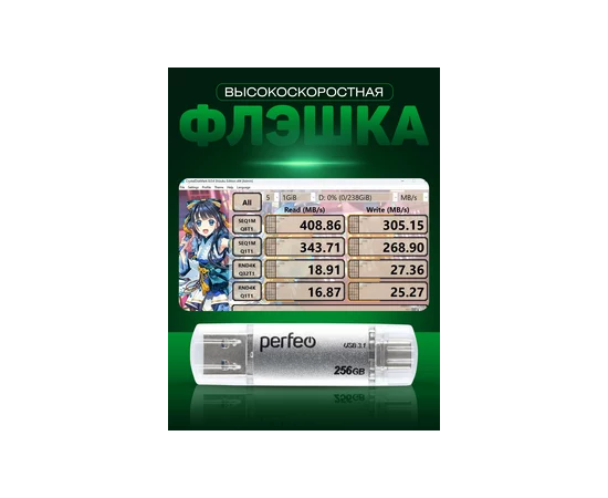 Флешка Perfeo 3.1 256GB C16 / Серебристая Type A+C, (Арт. PF-C16S0256TC)