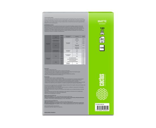Фотобумага Cactus CS-MA4180100 A4/180г/м2/100л/белый матовое для струйной печати