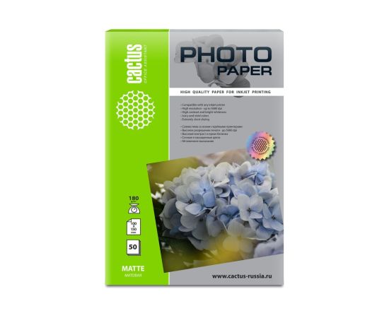 Фотобумага Cactus CS-MA618050 A6/180г/м2/50л/белый матовое для струйной печати