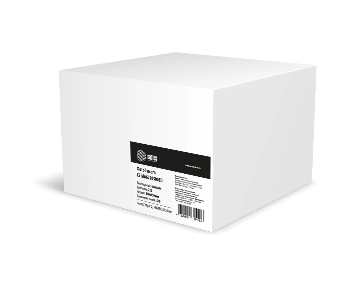 Фотобумага Cactus CS-MA6220500ED A6/220г/м2/500л/белый матовое/матовое для струйной печати