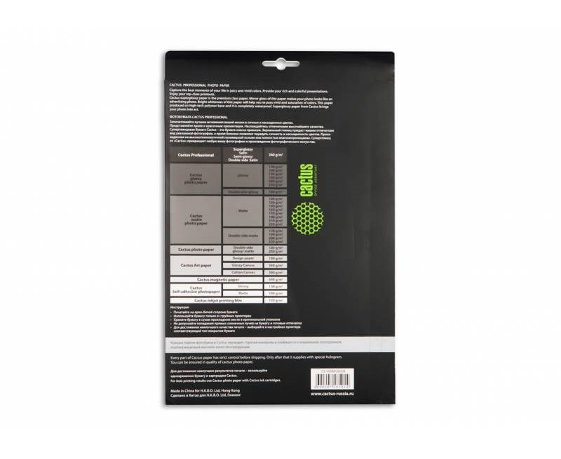 Глянцевая фотобумага Cactus представляет собой оптимальное сочетание цены и качества. Она отлично подходит для печати памятных фотографий в фото-рамку или фотоальбом. Обладая приятным глянцевым блеском, она украсит ваши фотографии и презентации. А высококлассное покрытие позволит добиться максимально точной цветопередачи, что будет полезно при печати макетов и web-графики.