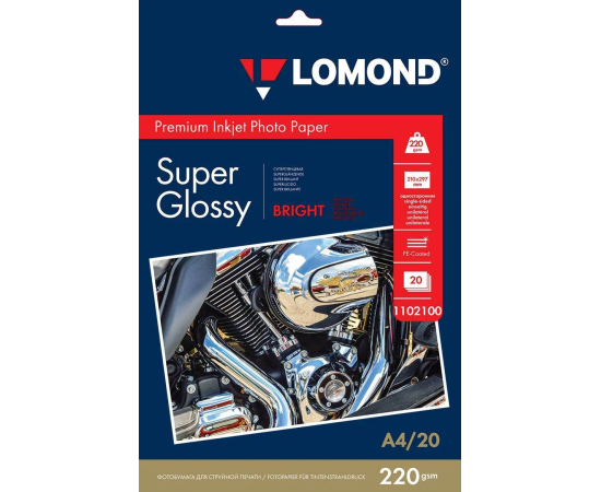 Фотобумага Lomond 1102100 A4/220г/м2/20л/белый супер глянец для струйной печати