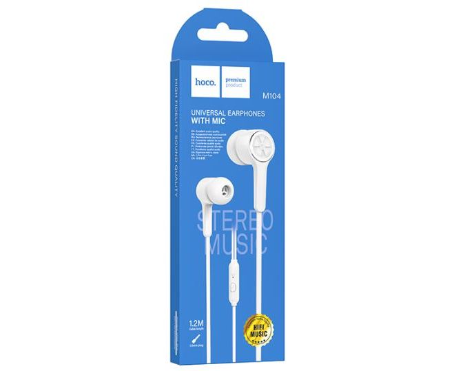 Наушники проводные HOCO M104 Gamble отличный аксессуар для Вашего телефона. Их основные отличия: активное шумоподавление, глубокое звучание и мощные басы. Наушники с микрофоном можно использовать для прослушивания музыки, для развлечения и просмотра видео, используя различные гаджеты. Вы почувствуете полное погружение! Так же наушники вкладыши имеют гарнитуру, с помощью которой можно ответить на звонок, воспроизвести или переключить музыку, не доставая телефон из кармана. Это универсальная модель, которая подходят для подключения к любой аудио электронике и технике с разъёмом AUX Jack 3.5 мм, включая геймпады и ноутбуки. Они удобно сидят в ухе и не приносят дискомфорта, а это значит что Вы с легкостью можете использовать их для длительной работы. Используйте наушники в любых уловиях при занятии спортом, во время отдыха или учебы. Наслаждайтесь чтением аудиокниг или прослушиванием музыки в любом комфортном для вас месте