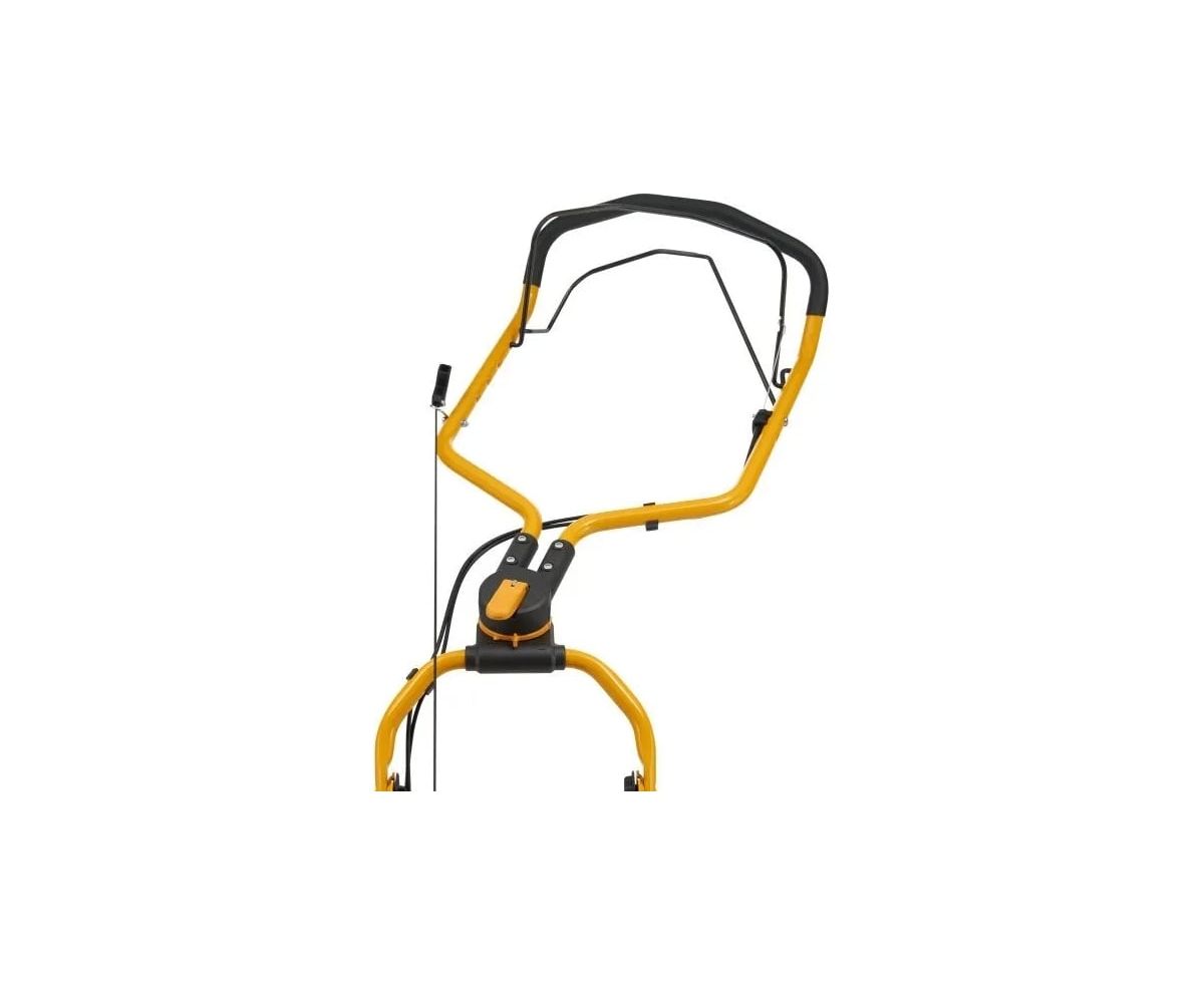 Эргономичная, надежная и компактная газонокосилка оснащена складывающейся ручкой для удобства хранения.