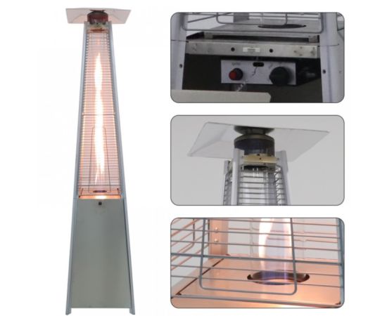 Уличный газовый инфракрасный обогреватель 08HW-SS. Корпус и высокая мощность обуславливают специфические сферы эксплуатации обогревателя: украшение входных групп, освещение и обогрев веранд и открытых участков, декор и обогрев в зимних шатрах, применение в больших залах и использование, как источника мягкого и красивого пламени. Прибор имеет многоуровневую систему безопасности: защита от опрокидывания, перегрева и защита от потухшего пламени. Пьезорозжиг и плавная регулировка пламяни, гарантируют комфортную эксплуатацию обогревателя. Корпус изготовлен из нержавеющей стали.