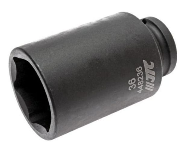 Головка торцевая 1/2” 36 ударная высокая L=82мм JTC 448236 - это компактное ручное приспособление, которое используется для демонтажа различного крепежа, соединяющего конструктивные элементы легкового и грузового транспорта. Также подходит для машин и механизмов, используемых в промышленности, сельском хозяйстве и др. сферах. Данная модель применяется совместно с гаечным ключом или воротком на 1/2"х36 мм. Материал головки - высокопрочная хром-молибденовая сталь.